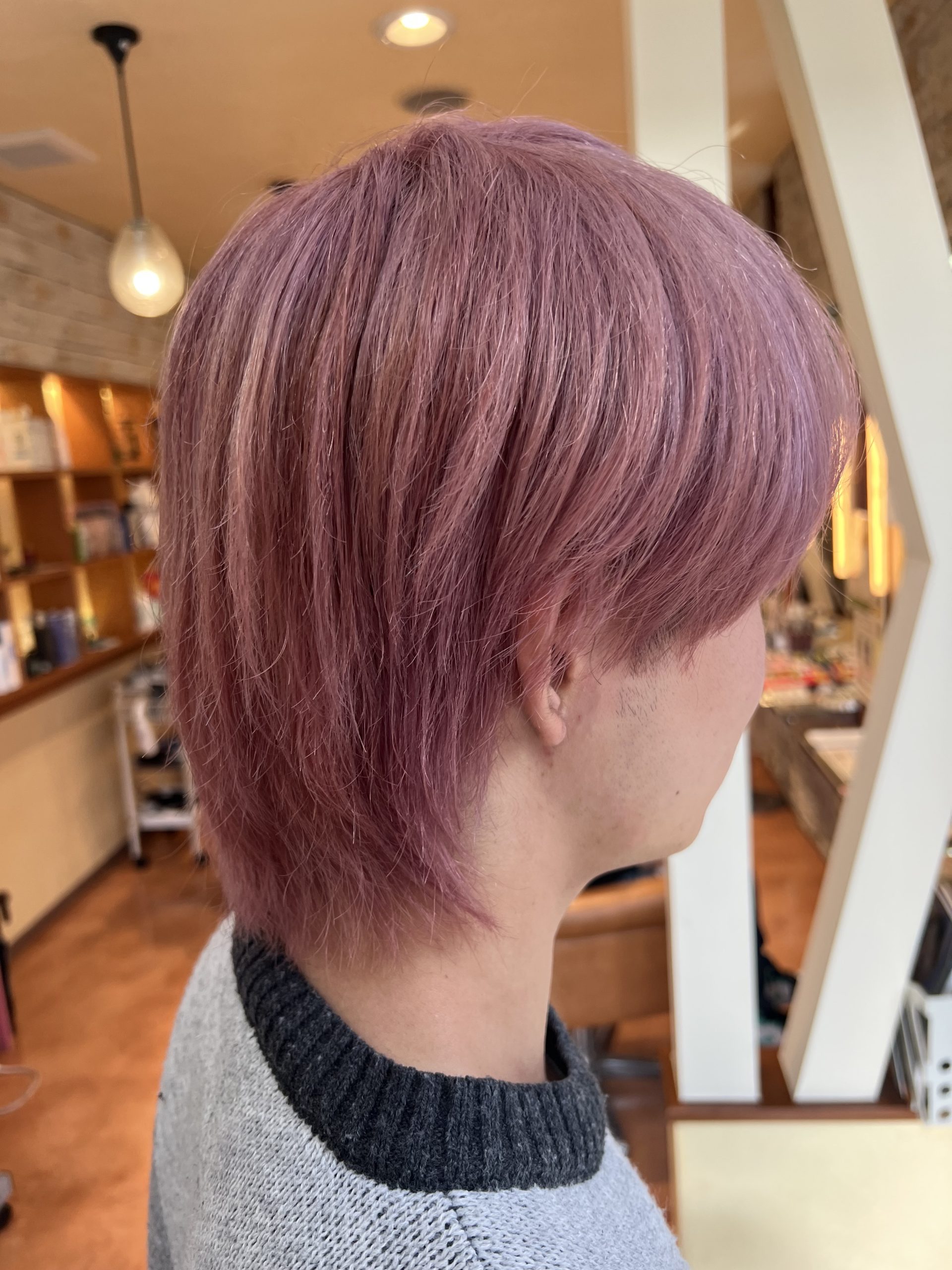 ブリーチでしっかりベースを整えた上に、ほんのり青みを感じるピンクをオン。