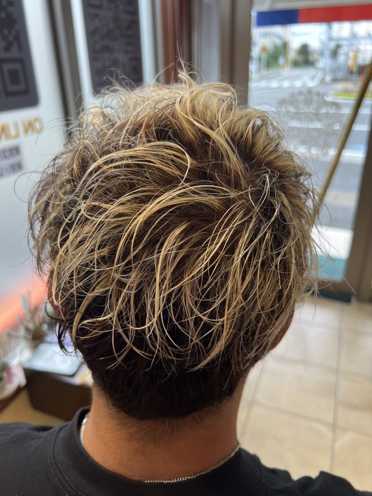 細かく入れたハイライトが動きを強調し、どの角度から見ても立体感が際立つメンズスタイル。